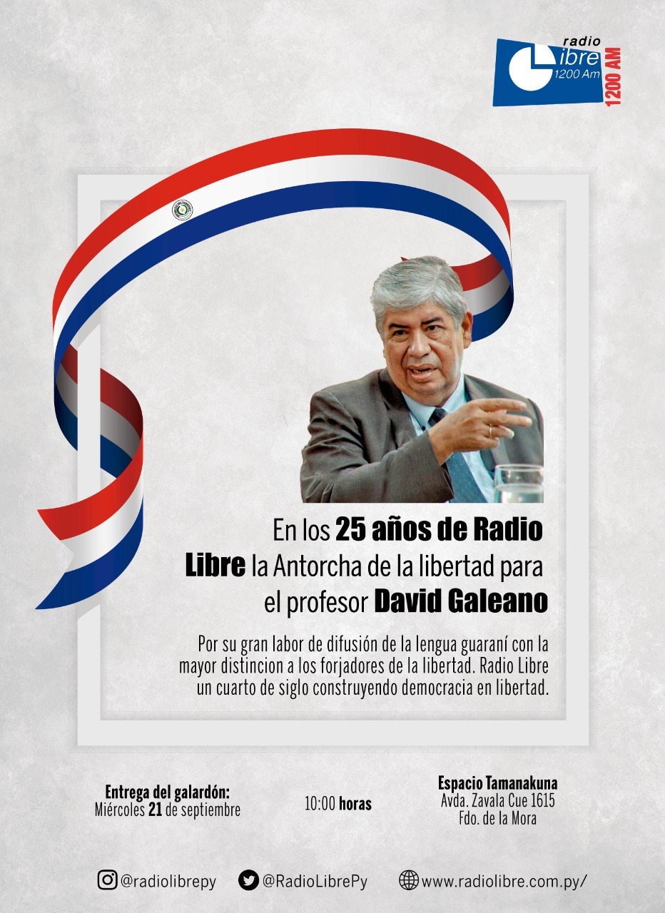 LIBERTAD – DAVID GALEANO OLIVERA – RADIO LIBRE, en (https://www.facebook.com/radiolibrepy/posts/premio-antorcha-de-la-libertad-2022-david-galeano-oliverapor-su-trabajo-tesonero/5613143205391701/)